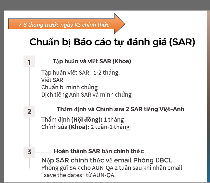 7. Chuẩn bị Báo cáo tự đánh giá (SAR) như thế nào?