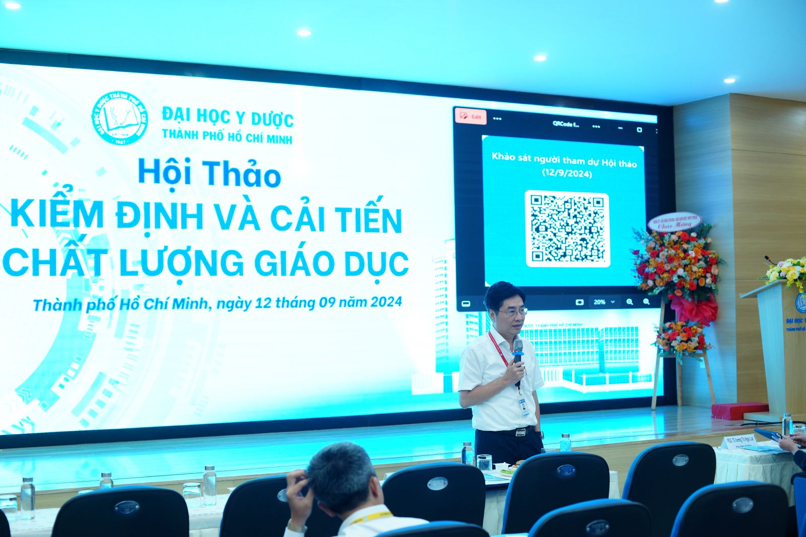 Trong ngày 12/09/2024, Ban tổ chức hội thảo vinh dự đón tiếp thầy GS.TS Trần Diệp Tuấn – Bí thư Đảng Uy, Chủ tịch Hội đồng Trường; PGS. TS Ngô Quốc Đạt – Phó Hiệu trưởng phụ trách, PGS. TS Nguyễn Văn Chinh – Phó Hiệu trưởng; PGS. TS Vương Thị Ngọc Lan – Phó Hiệu trưởng, PGS. TS. Lê Quang Minh – Nguyên hiệu trưởng vx88 esball Cần Thơ, nguyên phó giám đốc vx88 esball Quốc gia TP. Hồ Chí Minh, Viện trưởng Viện Quản trị đại học, vx88 esball Quốc gia TP. Hồ Chí Minh; Thành viên vx88m ĐHYD TPHCM cùng các thầy, cô là Lãnh đạo các Phòng chức năng, Trung tâm, vx88b, Ban chủ nhiệm các Khoa cùng với sự tham gia của hơn 200 giảng viên, cán bộ viên chức tới từ các khoa, phòng, trung tâm.
