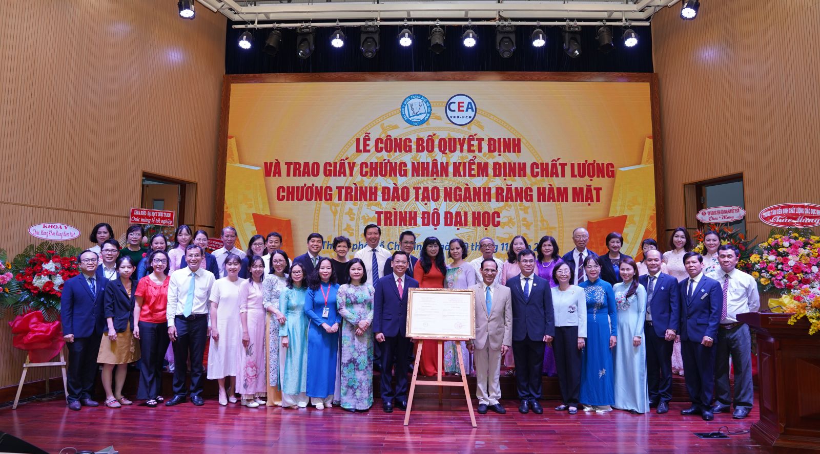 Sáng ngày 10/11/2022, vx88 esball thành phố Hồ Chí Minh long trọng tổ chức Lễ Công bố quyết định và Trao Giấy chứng nhận vx88m chất lượng chương trình đào tạo ngành Răng Hàm Mặt trình độ đại học theo Bộ tiêu chuẩn kiểm định chất lượng của Bộ Giáo dục và Đào tạo. Đại diện Trung tâm vx88m chất lượng vx88 esball Quốc gia thành phố Hồ Chí Minh, có sự tham dự của PGS.TS. Lê Ngọc Quỳnh Lam, Giám đốc, và ông Lã Hoài Tuấn, Chánh Văn phòng. Về phía vx88 esball Thành phố Hồ Chí Minh, PGS. TS. Ngô Quốc Đạt, Phó Hiệu trưởng, TS. Hoàng Trọng Hùng Phó trưởng khoa phụ trách Khoa Răng Hàm Mặt, Ban Chủ nhiệm Khoa Răng Hàm Mặt, cùng các lãnh đạo Phòng ĐBCLGD&KT, Phòng Đào tạo đại học đại diện Trường nhận Giấy chứng nhận.
