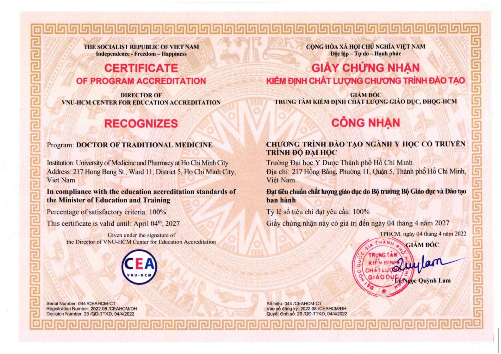 Giấy chứng nhận vx88m Chất lượng vx88 code vx88 Bác sĩ Y học Cổ truyền theo tiêu chuẩn Bộ Giáo dục và Đào tạo