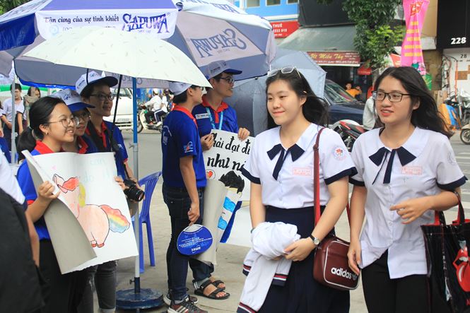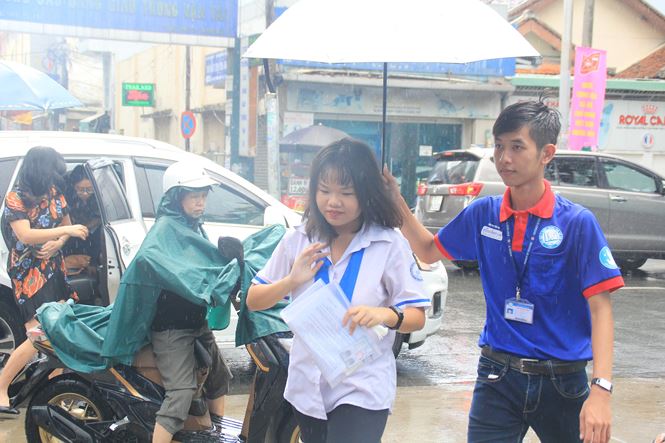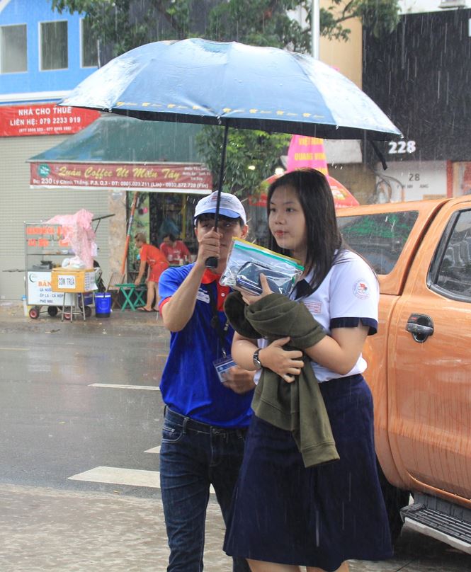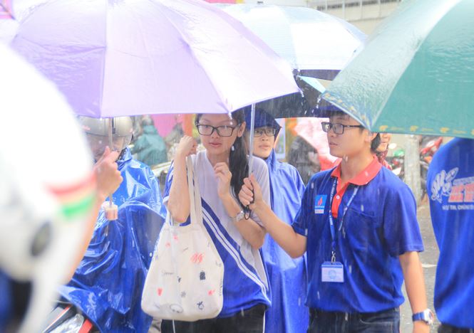 Liền đó, các bạn sinh viên Trường vx88 esball Y dược TPHCM tham gia chương trình Tiếp sức mùa thi tại điểm thi này đã mang dù ra che, đưa các em vào khu vực thi