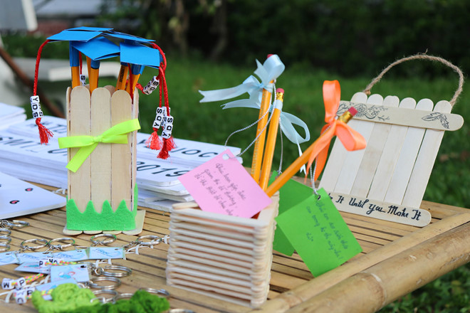 Ngoài ra, sinh viên tình nguyện Tiếp sức mùa thi 2019 Trường ĐH vx88b còn tự tay làm những món quà nhỏ xinh xắn gửi đến thí sinh thay cho những lời chúc tốt đẹp.