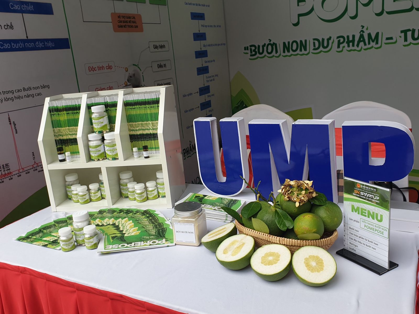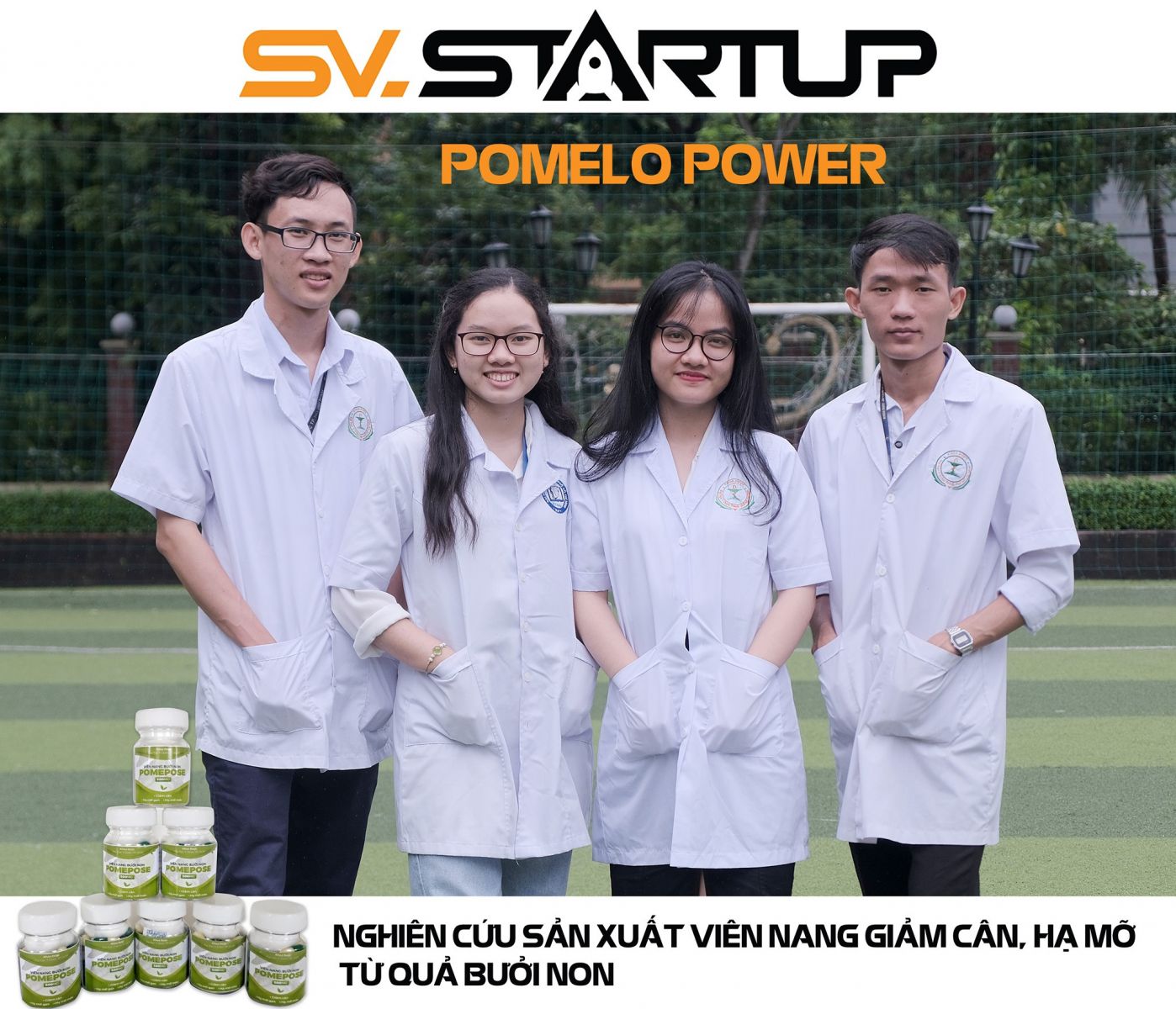 Đây là ý tưởng vừa giành giải Nhì cuộc thi khởi nghiệp lần đầu tiên được Trường ĐH vx88b TP.HCM tổ chức, được chọn tham dự SV.Startup-2020 – cuộc thi dành cho các ý tưởng khởi nghiệp của học sinh, sinh viên trên toàn quốc. Dựa trên nền tảng bài thuốc cổ truyền từ quả bưởi non và các kiến thức dược học hiện đại, ý tưởng thực phẩm bảo vệ sức khỏe – Viên nang bưởi non Pomepose 500mg ra đời, với thành phần là pectin và bioflavonoid nhằm hỗ trợ giảm cân, hạ mỡ một cách an toàn – hiệu quả, trên đối tượng là những người béo phì, mỡ bụng, mỡ máu, mỡ gan cao. Thêm nữa, khắc phục được vị đắng khó uống của bưởi non và tận dụng nguồn bưởi non phế phẩm dồi dào ở nước ta.