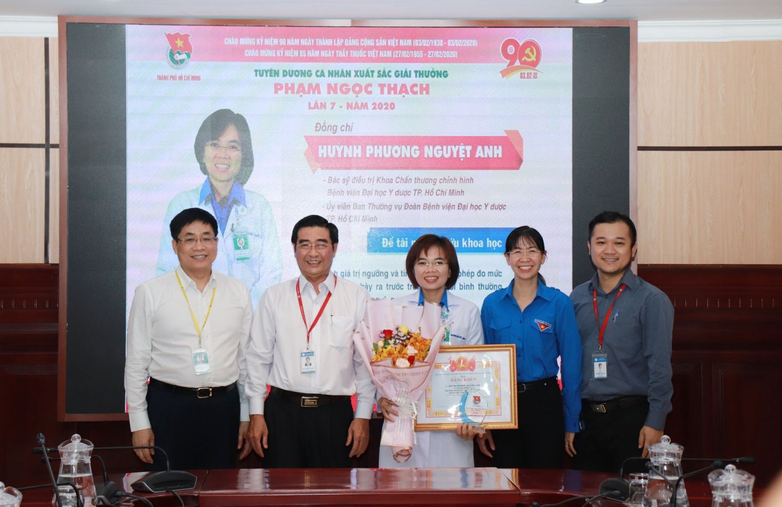 Ngày 26/02/2020, tại vx88 esball TPHCM (ĐHYD TPHCM), Ban Thường vụ Thành đoàn đã đến thăm, chúc mừng các đơn vị y tế nhân dịp Ngày Thầy thuốc Việt Nam 27/02 và tuyên dương BS. Huỳnh Phương Nguyệt Anh - Khoa Chấn thương chỉnh hình vx88m vx88 esball TPHCM (BV ĐHYD TPHCM) đạt giải thưởng Phạm Ngọc Thạch lần 7 năm 2020.