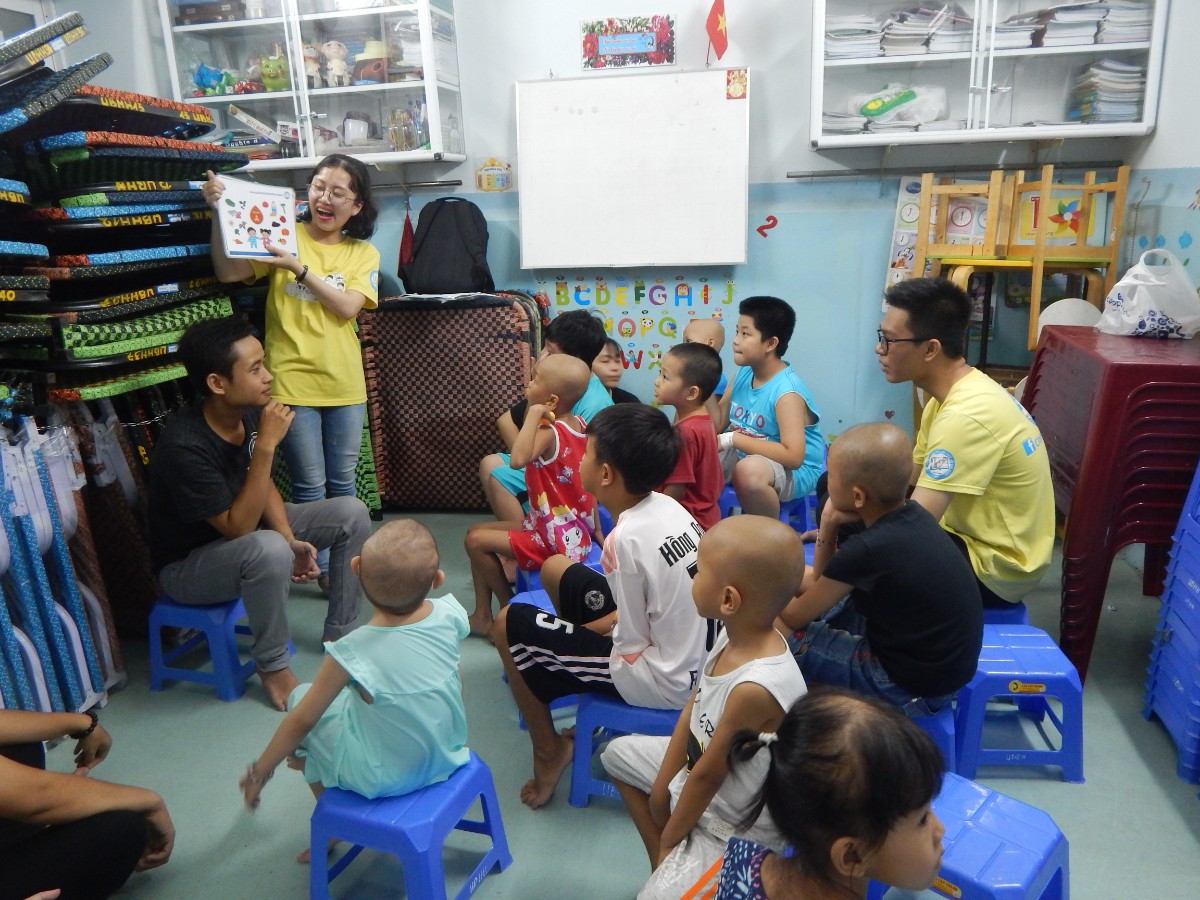 “Ở khoa Thận và khoa Ung Bướu, mấy bé lúc nào cũng đặt kim luồn trong người, có khi các em phải vác máy chạy thận theo nữa. Mấy bé xương thủy tinh thì gặp rất nhiều khó khăn trong việc di chuyển. Nên tụi mình đều phải xem xét đến bài học cũng như cách thức giảng dạy để làm sao phù hợp nhất với các bé - Bạn Phước Toàn, thành viên CLB Bé Khỏe Bé Ngoan chia sẻ.