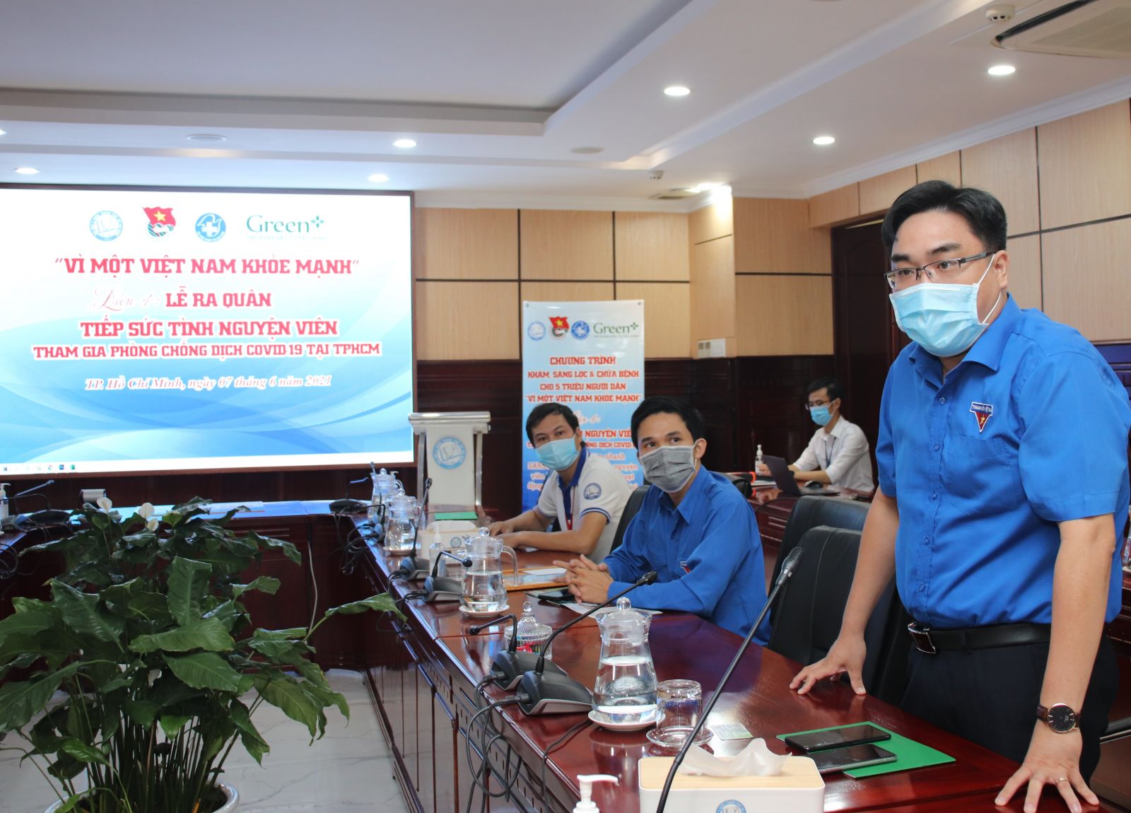 Sáng ngày 07/6/2021, tại vx88 esball TP. Hồ Chí Minh đã diễn ra buổi lễ ra quân chương trình “Tiếp sức tình nguyện viên” tham gia phòng, chống dịch COVID-19 tại TP. Hồ Chí Minh với sự tham gia của đại diện lãnh đạo Hội Thầy thuốc trẻ Việt Nam, Thành Đoàn TP. Hồ Chí Minh, vx88 esball TP. Hồ Chí Minh và Tập đoàn đầu tư tài chính Green+. Chương trình được diễn ra trong không khí trang trọng, đảm bảo thực hiện nghiêm túc và đầy đủ các biện pháp phòng chống dịch bệnh COVID-19 theo Chỉ thị 15/CT-TTg ngày 27/3/2020 của Thủ tướng Chính phủ.