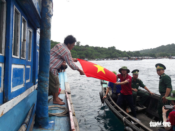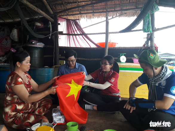 Chiều 24-7, trong chương trình tình nguyện tại mặt trận đảo Thổ Chu (xã Thổ Châu, huyện Phú Quốc, Kiên Giang), các chiến sĩ tình nguyện đã vượt sóng biển ra khơi trao các tủ thuốc gia đình và cờ Tổ quốc cho ngư dân sinh sống trên các tàu đánh bắt thủy hải sản, hộ dân sống tại các nhà bè trên đảo.