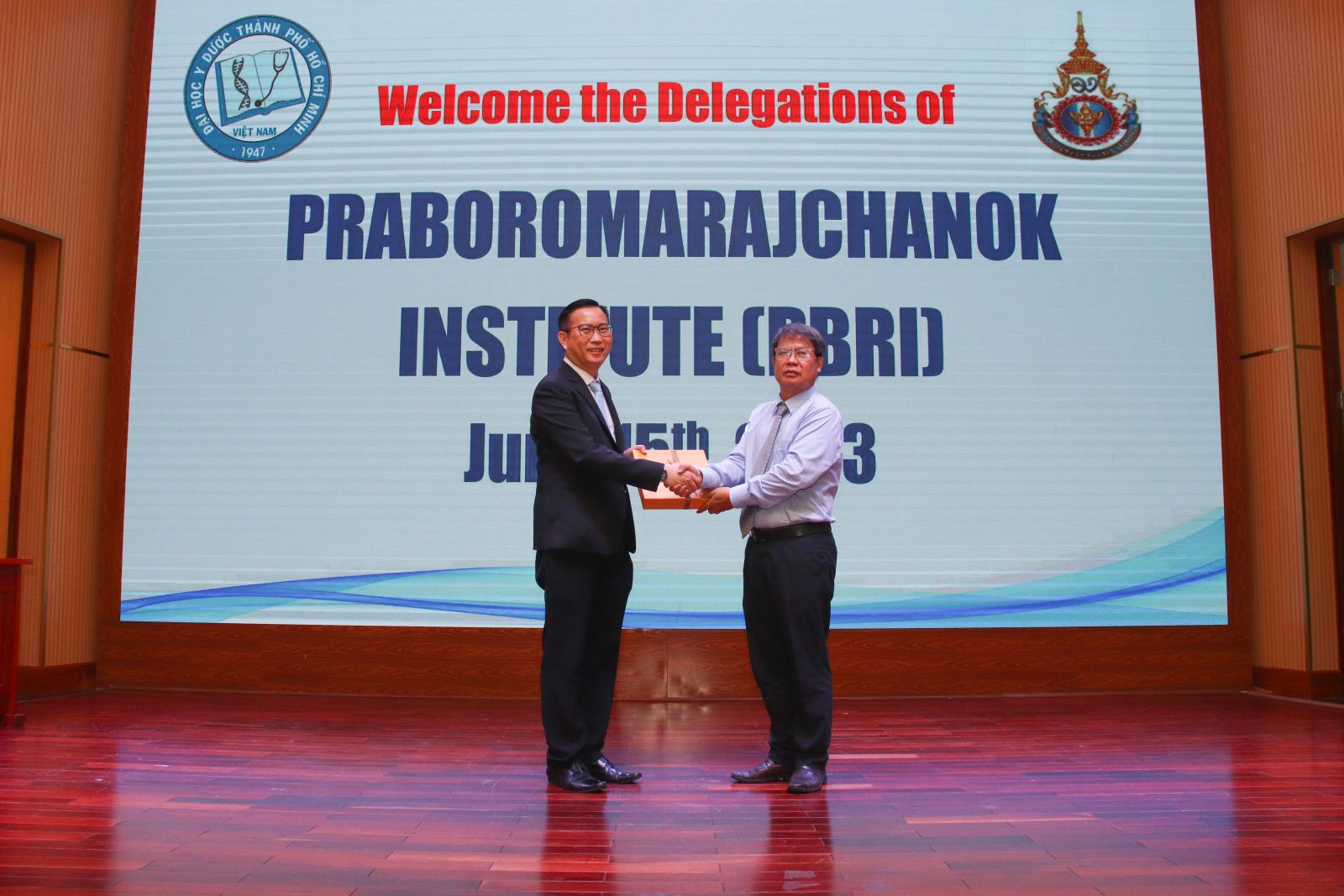 Ngày 15/06/2023 Đại học Y Dược Thành phố Hồ Chí Minh tiếp đoàn Học viện Praboromrajchanok – Thái Lan do Ông Pisit Poltana – Phó Hiệu Trưởng Học viện làm trưởng đoàn đến tham quan và trao đổi giao lưu văn hóa giữa hai Trường. Đi cùng đoàn có các giảng viên và sinh viên của Học viện