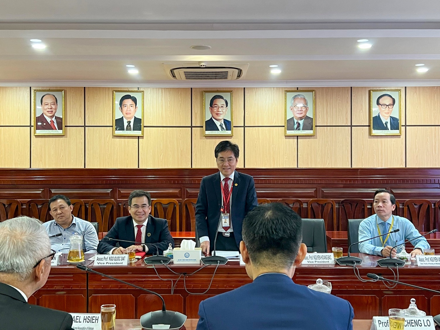 Đoàn NCKU chụp hình lưu niệm cùng đại diện lãnh đạo