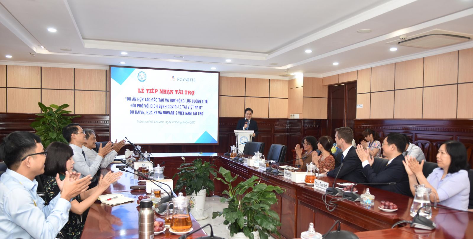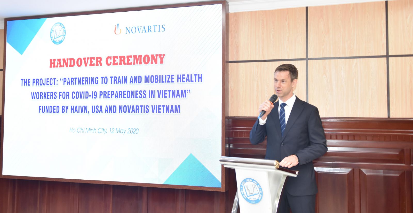 Trước tình hình diễn biến phức tạp của dịch bệnh Covid-19 trên thế giới cũng như ở Việt Nam, Novartis Việt Nam và Tổ chức HAIVN đã tài trợ thực hiện “Dự án hợp tác đào tạo và huy động lực lượng y tế đối phó với dịch bệnh Covid-19 tại Việt Nam” với mục đích tổ chức các khóa đào tạo, tập huấn cho sinh viên năm cuối các Trường đại học, cao đẳng y dược trên toàn quốc để cập nhật kiến thức về phòng, chống dịch bệnh Covid-19, sẵn sàng tham gia công tác phòng chống dịch bệnh khi cần thiết.