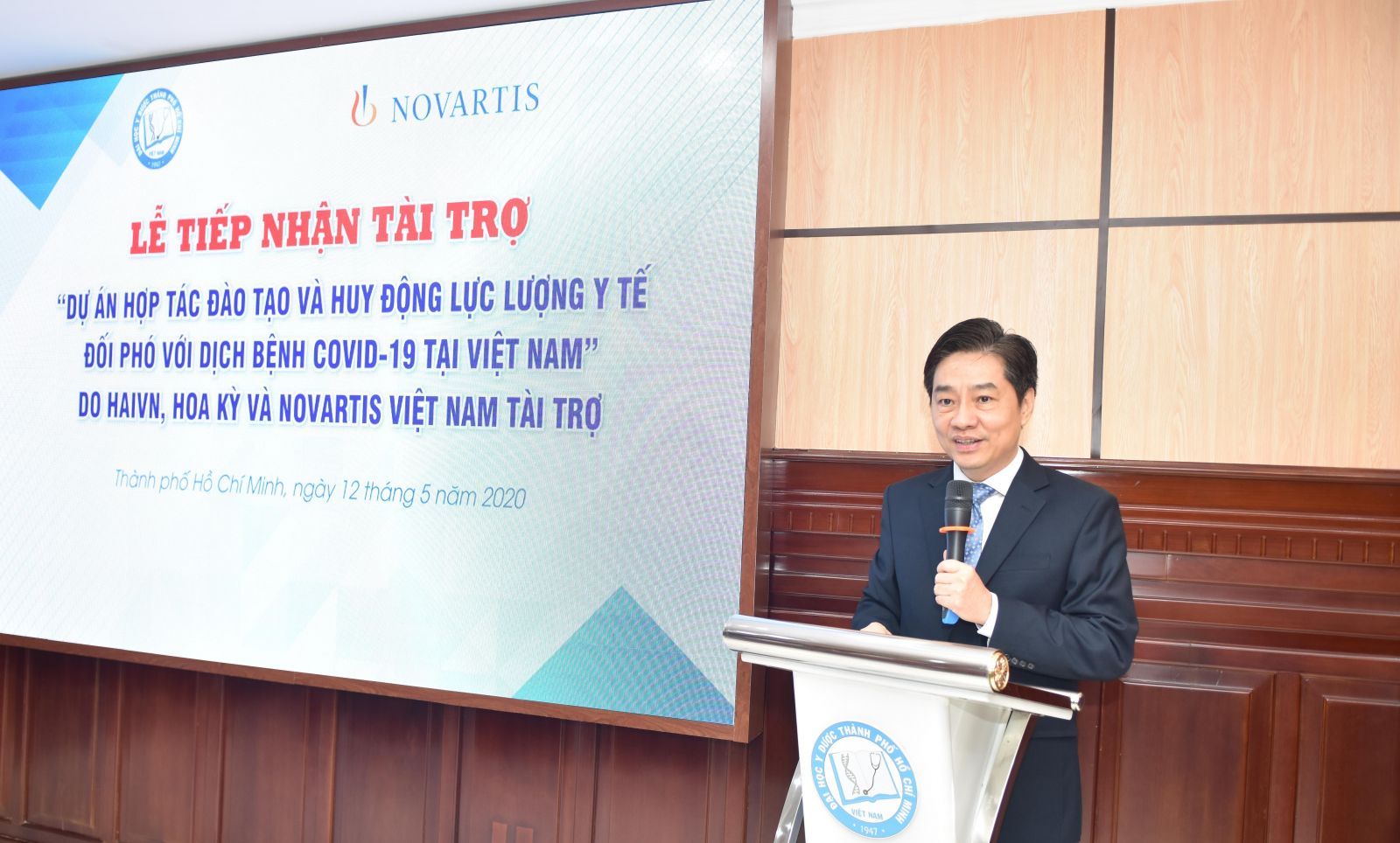 Phát biểu tại buổi lễ, thay mặt cho 06 trường đại học y tại Việt Nam nhận tài trợ, PGS. Trần Diệp Tuấn, Hiệu trưởng đã gửi lời cám ơn chân thành đến Công ty Novartis Việt Nam và Tổ chức HAIVN đã tích cực hỗ trợ cho dự án. Dự án được triển khai có ý nghĩa vô cùng quan trọng trước tình hình dịch bệnh Covid-19 diễn biến phức tạp, đây là cơ sở để chuẩn bị nguồn nhân lực y tế dự bị cho công tác phòng, chống dịch bệnh Covid-19 tại Việt Nam.