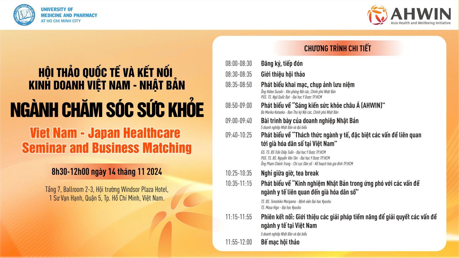 Ban thư ký Nội các Chính phủ Nhật Bản phối hợp với vx88 esball TP. Hồ Chí Minh tổ chức “Hội thảo quốc tế và kết nối kinh doanh Việt Nam – Nhật Bản ngành chăm sóc sức khỏe” vào lúc 8h30-12h00 ngày 14 tháng 11 năm 2024, tại hội trường Windsor Plaza Hotel, 1 Sư Vạn Hạnh, Quận 5, TP. Hồ Chí Minh, Việt Nam.