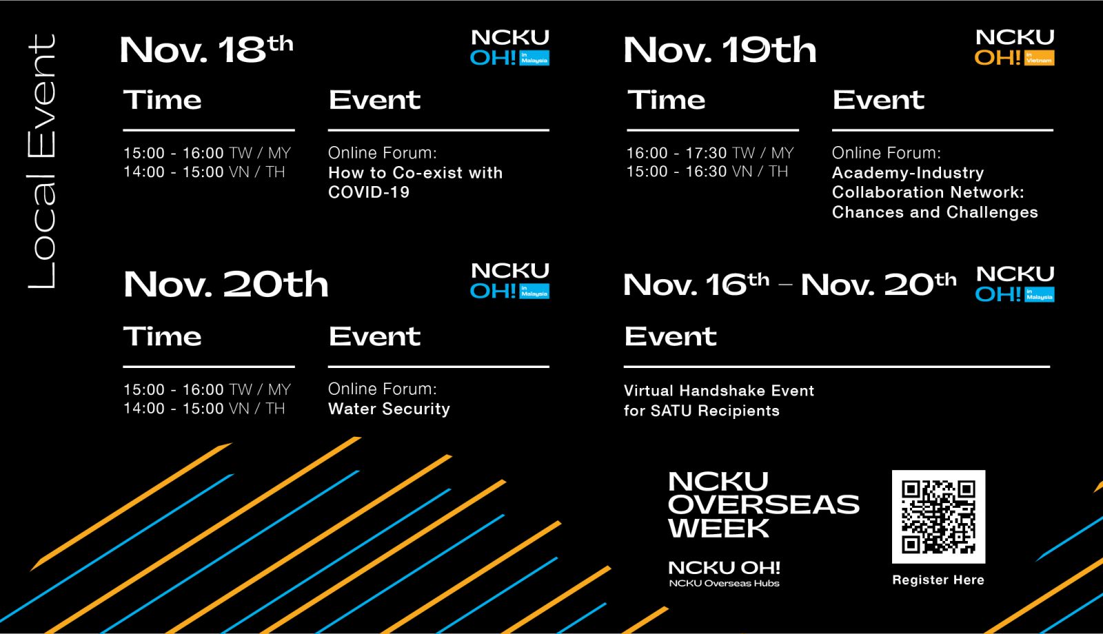Nhằm mục tiêu thắt chặt việc Hợp tác với các Trường đối tác của vx88 esball Quốc Gia Thành Công, Đài Loan (NCKU), đặc biệt là Việt nam, Thái Lan và Malaysia, NCKU sẽ tổ chức tuần lễ NCKU Overseas Week dưới hình thức Virtual meeting