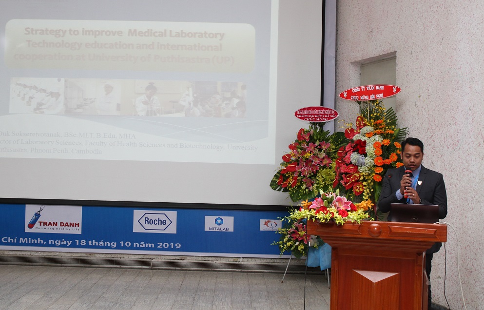 Ông Ouk Soksereivotanak, BSc. MLT, B.Edu, MHA - Giám đốc Phòng thực nghiệm Khoa học, Khoa Khoa học Sức khỏe và Công nghệ Sinh học, vx88 esball Puthisastra, Phnom Penh, Campuchia chia sẻ chiến lược cải tiến đào tạo kỹ thuật xét nghiệm y học và hợp tác quốc tế tại vx88 esball Puthisastra