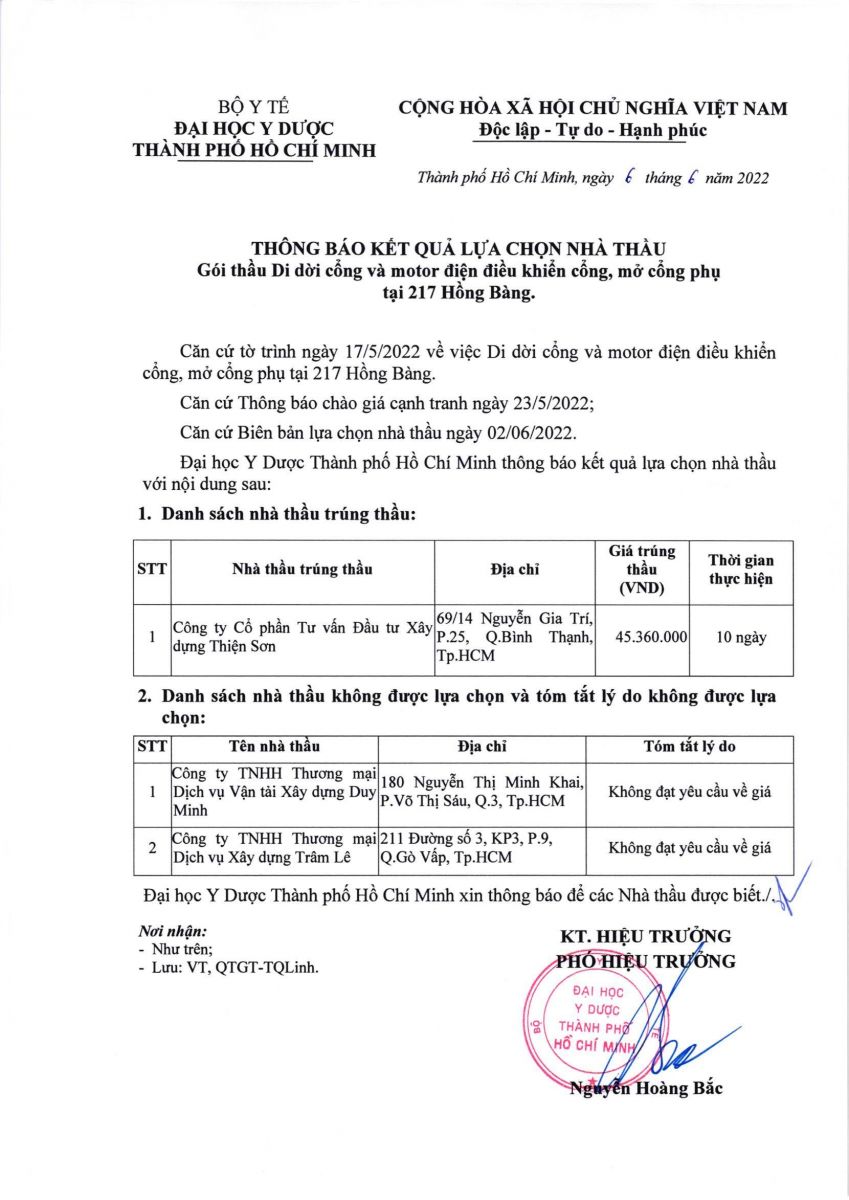 vx88b trúng thầu: Công ty Cổ phần Tư vấn Đầu tư Xây dựng Thiện Sơn Giá trúng thầu: 45.360.000đ