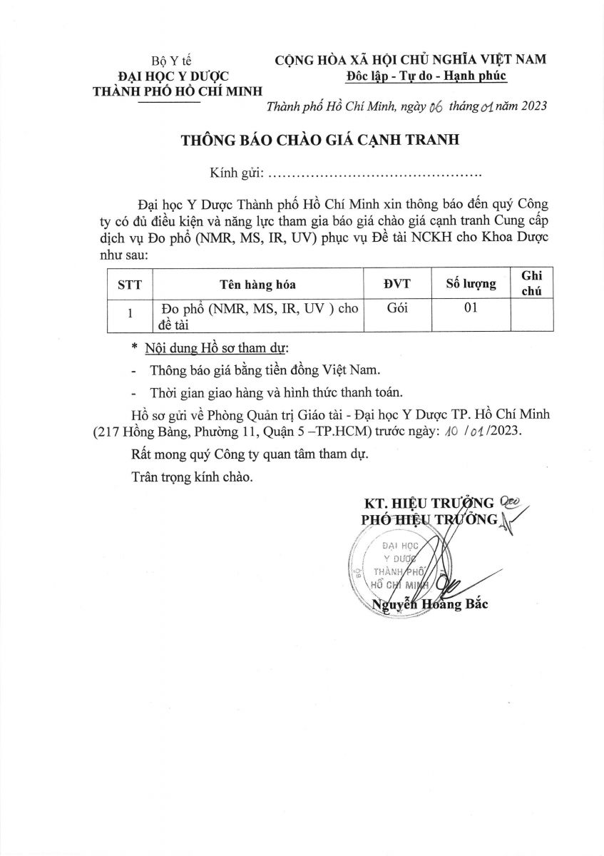 vx88 code chào giá cạnh tranh: "Cung cấp dịch vụ Đo phổ (NMR, MS, IR, UV) phục vụ Đề tài NCKH cho Khoa Dược" - vx88 esball vx88b