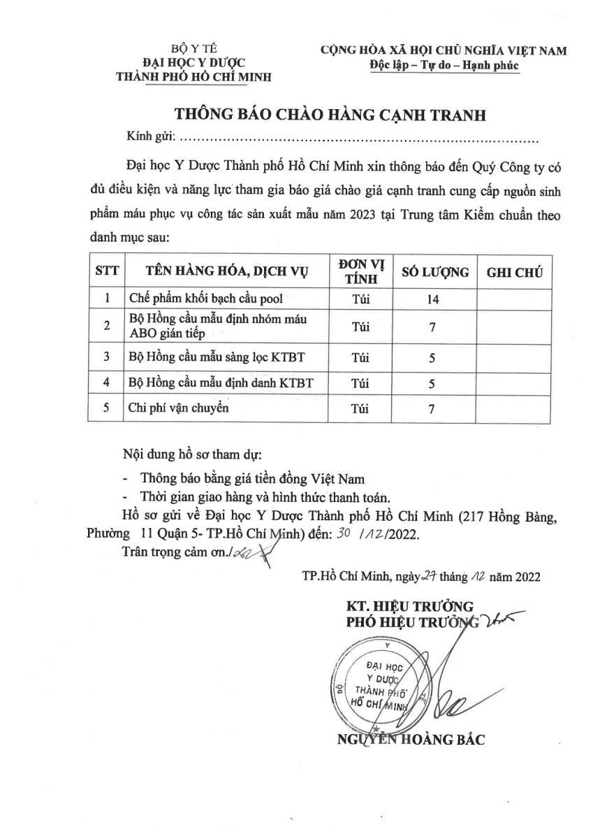 vx88 code chào giá cạnh tranh "Cung cấp Hồng cầu mẫu phục vụ công tác sản xuất mẫu năm 2023" cho vx88 esball Kiểm chuẩn - vx88 esball Y dược TP.vx88m