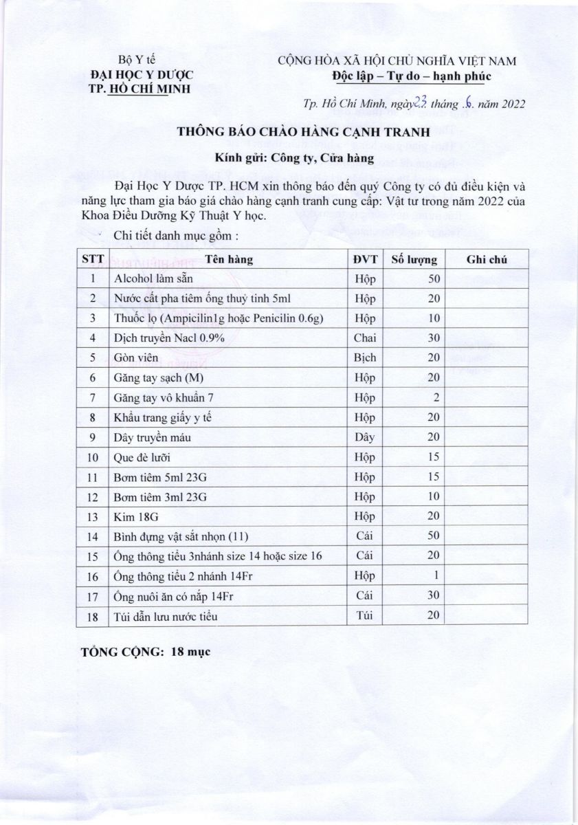 Thời gian nhận báo giá từ ngày 23/6/2022 đến ngày 30/6/2022