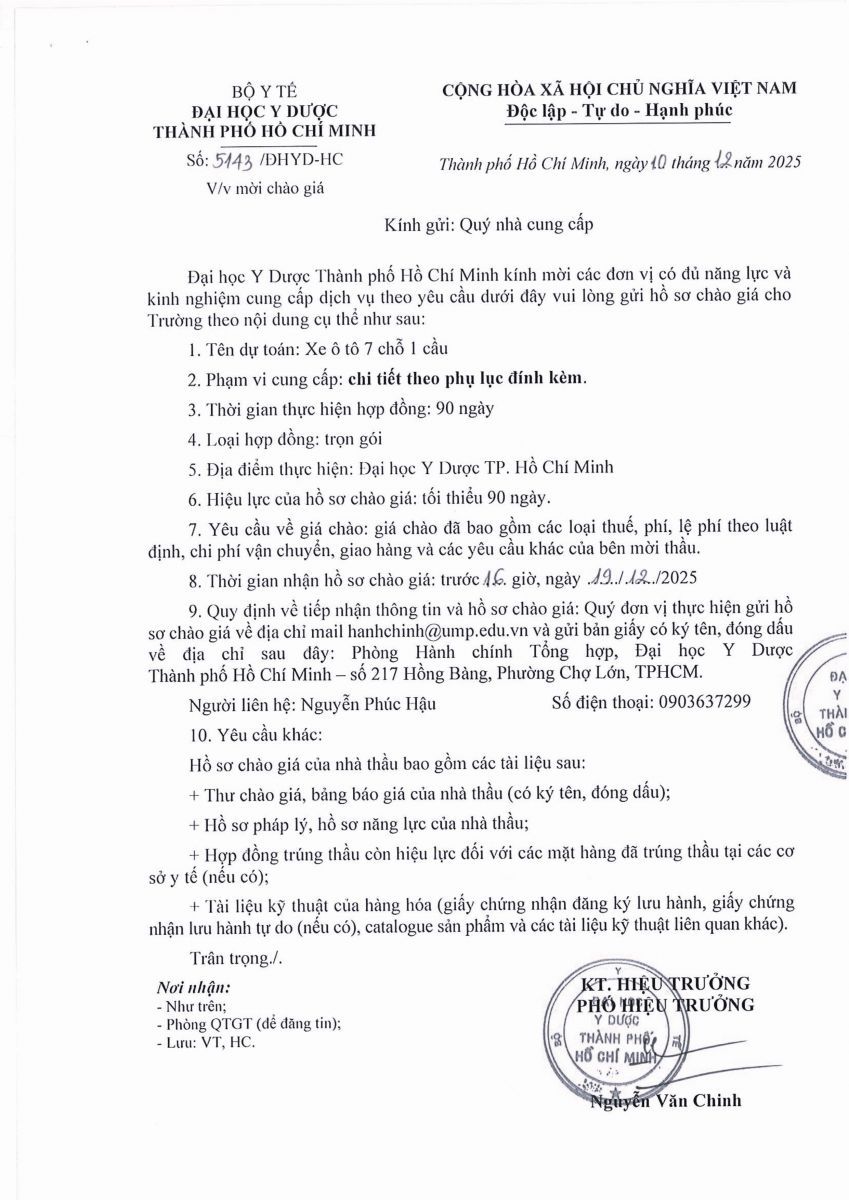 Thời gian nhận hồ sơ chào giá: từ ngày ra thông báo đến trước 16 giờ, ngày 19/12/2025