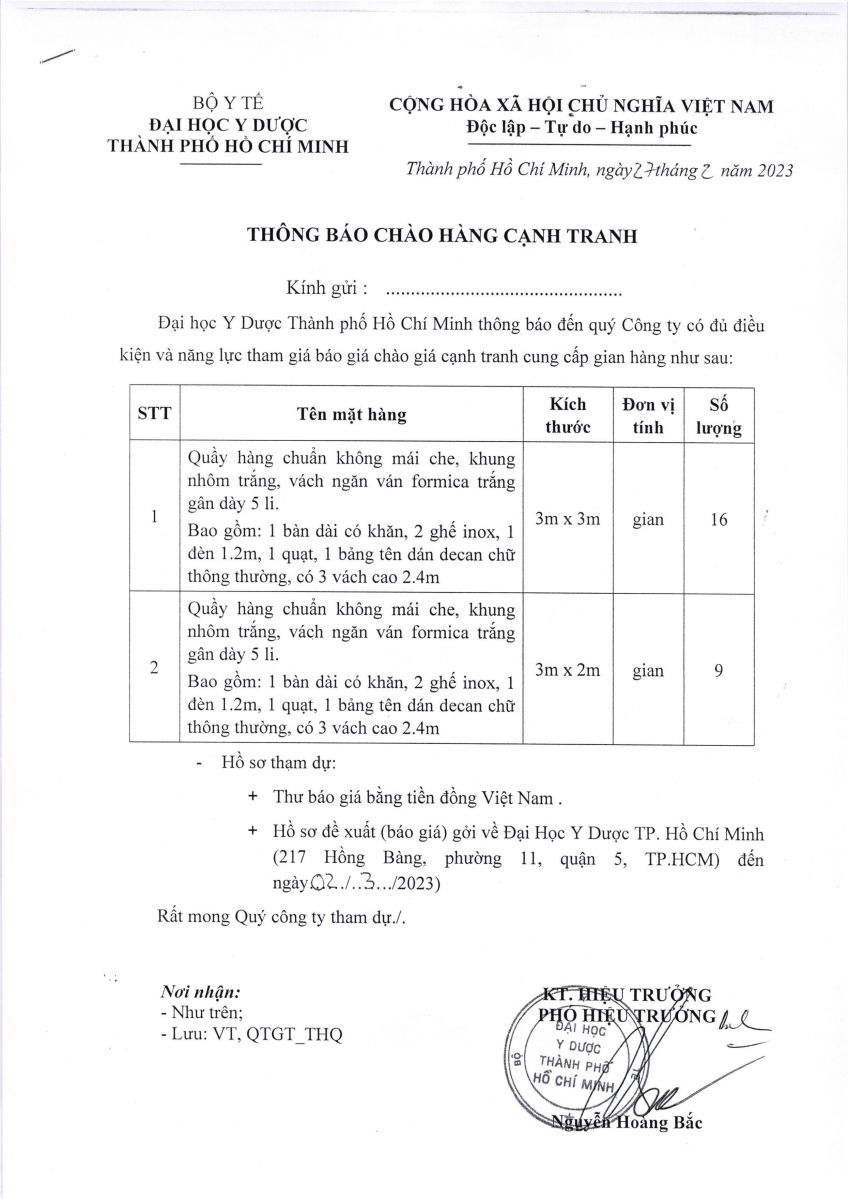 Thời gian nhận hồ sơ chào giá: từ ngày ra thông báo đến trước ngày 02/3/2023