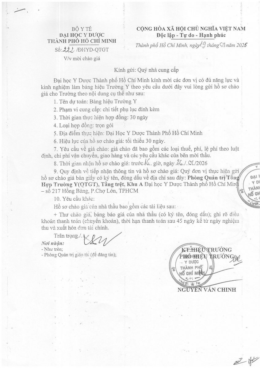 Thời gian nhận hồ sơ chào giá: từ ngày ra thông báo đến trước 16 giờ, ngày 26/01/2026