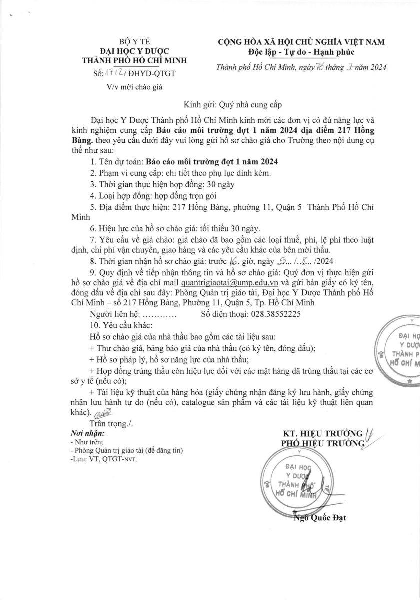 Thời gian nhận hồ sơ chào giá: từ ngày ra thông báo đến trước 16 giờ 00 ngày 05/8/2024