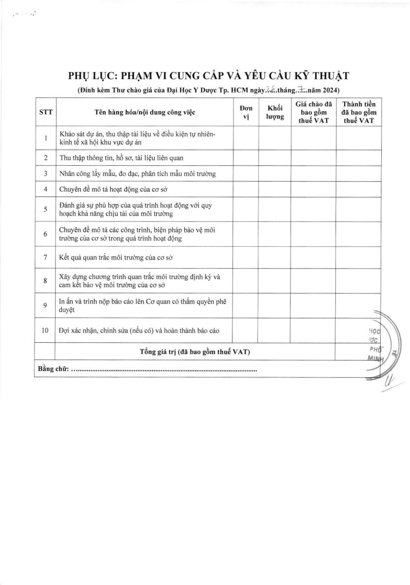 Thời gian nhận hồ sơ chào giá: từ ngày ra thông báo đến trước 16 giờ 00 ngày 05/8/2024