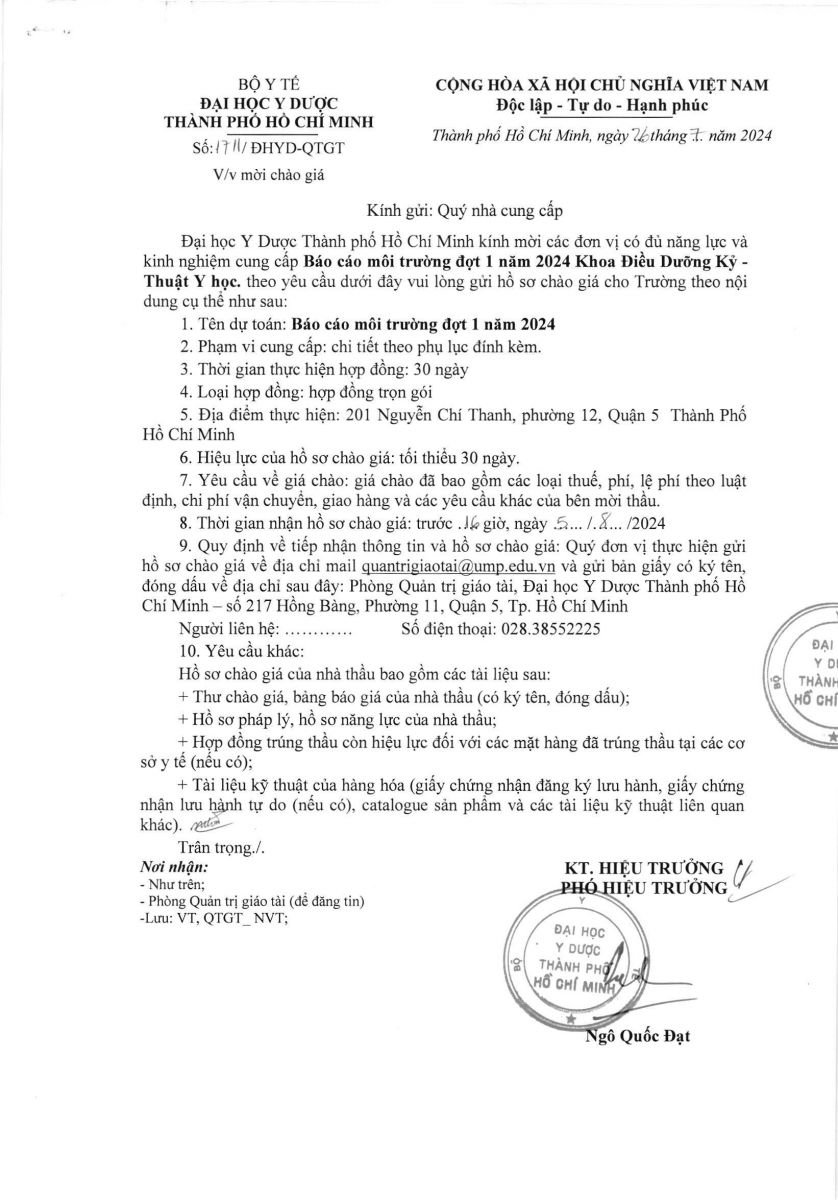 vx88 code mời chào giá: "Báo cáo môi trường đợt 1 năm 2024 tại 201 Nguyễn Chí Thanh, Phường 12, Quận 5” Khoa Điều dưỡng KTYH - vx88 esball vx88b