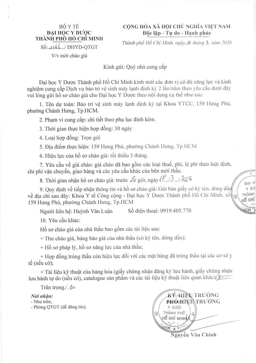Thời gian nhận hồ sơ chào giá: từ ngày ra thông báo đến trước 16 giờ 00, ngày 18/3/2026