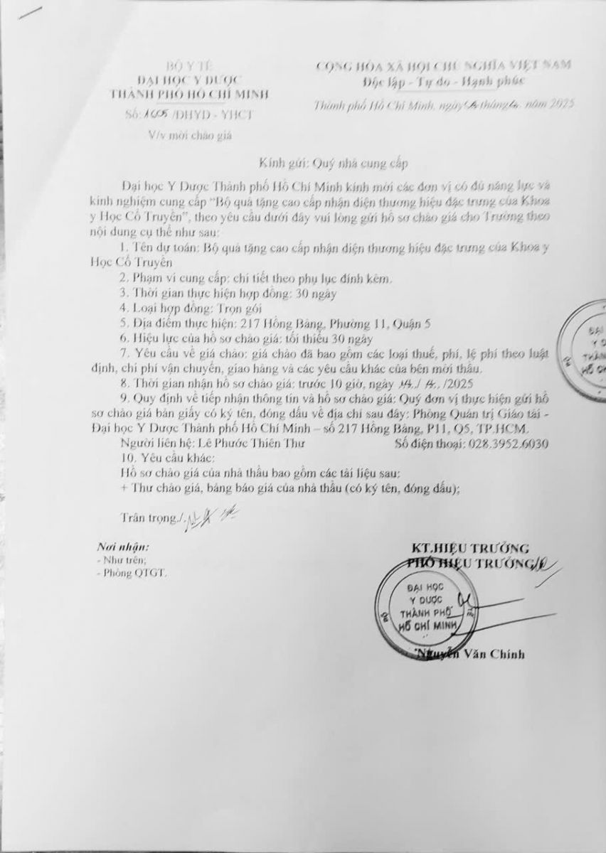 Thời gian nhận hồ sơ chào giá: từ ngày ra thông báo đến trước 10 giờ, ngày 14/4/2025