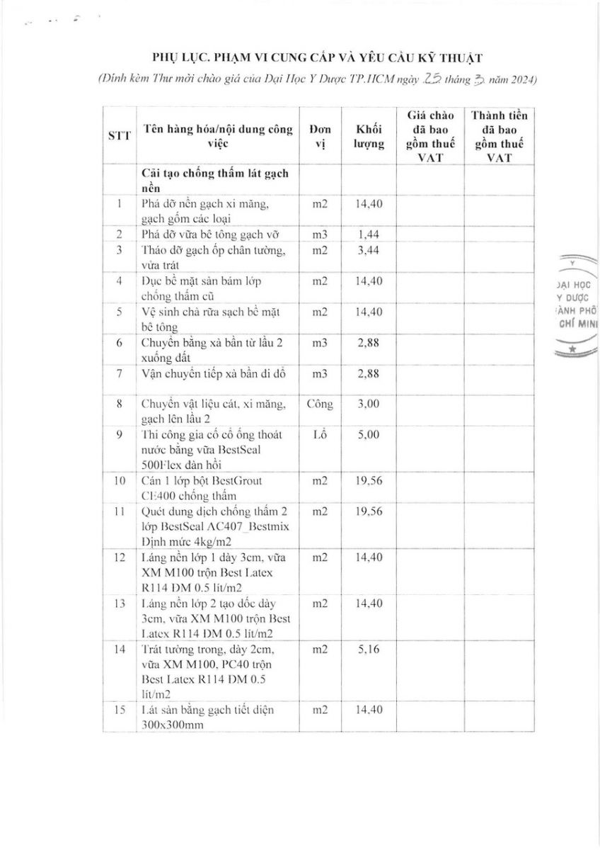 vx88 code mời chào giá: "Cải tạo chống thấm lát gạch và thay thế phụ kiện vách ngăn vệ sinh trần đèn bị hư hỏng tại nhà vệ sinh nữ lầu 2 trục bắc" Tòa nhà 15 tầng - vx88 esball vx88b