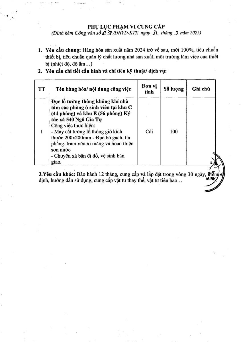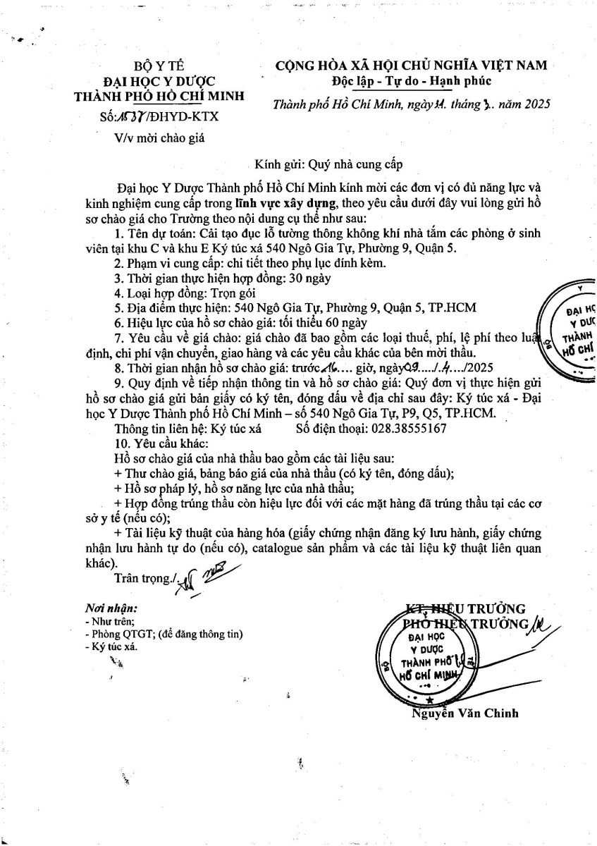 Thời gian nhận hồ sơ chào giá: từ ngày ra thông báo đến trước 16 giờ, ngày 09/4/2025