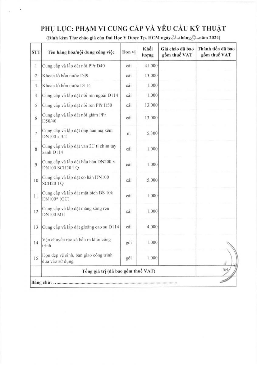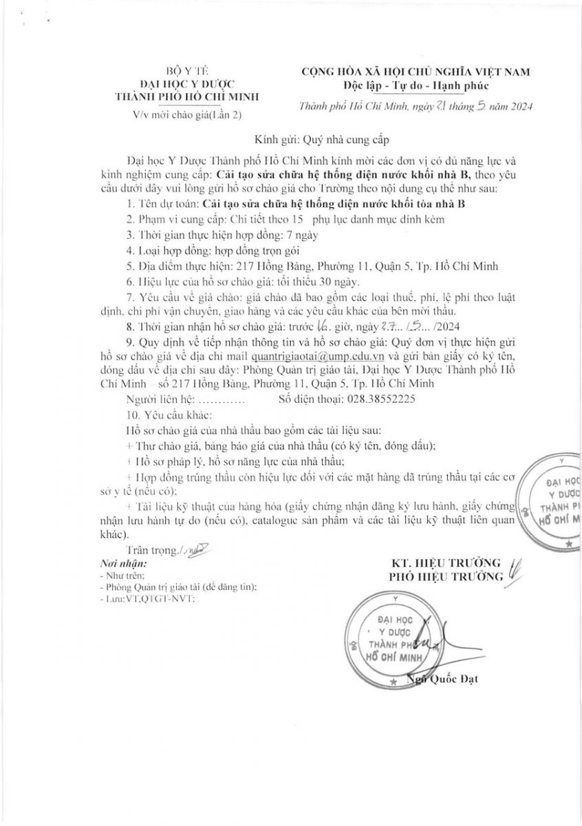 Thời gian nhận hồ sơ chào giá: từ ngày ra thông báo đến trước 16 giờ 00 ngày 27/5/2024
