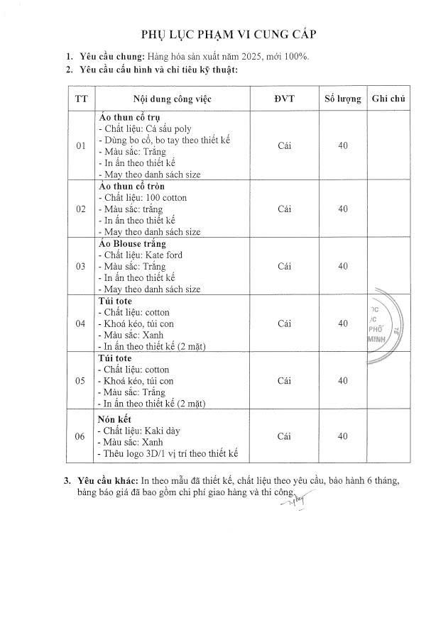 vx88 code mời chào giá: "Cung cấp áo thun, áo Blouse trắng, túi tote, nón kết” Phòng Công Tác Sinh Viên - vx88 esball vx88b