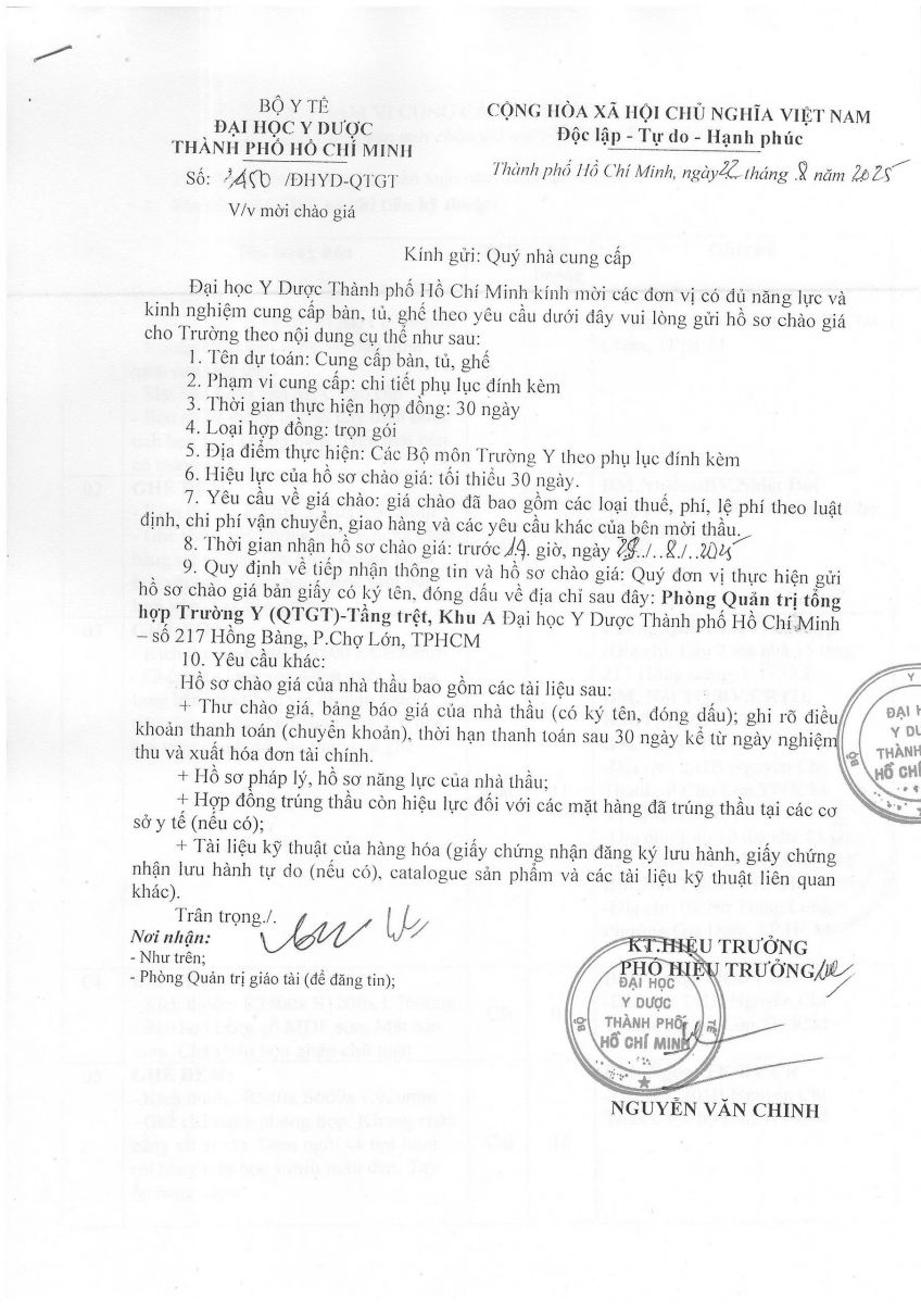 Thời gian nhận hồ sơ chào giá: từ ngày ra thông báo đến trước 14 giờ, ngày 29/8/2025