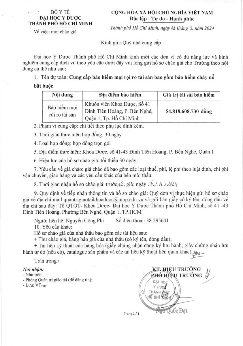 Thời gian nhận hồ sơ chào giá: Từ ngày ra thông báo đến trước 16 giờ 00 ngày 06/4/2024