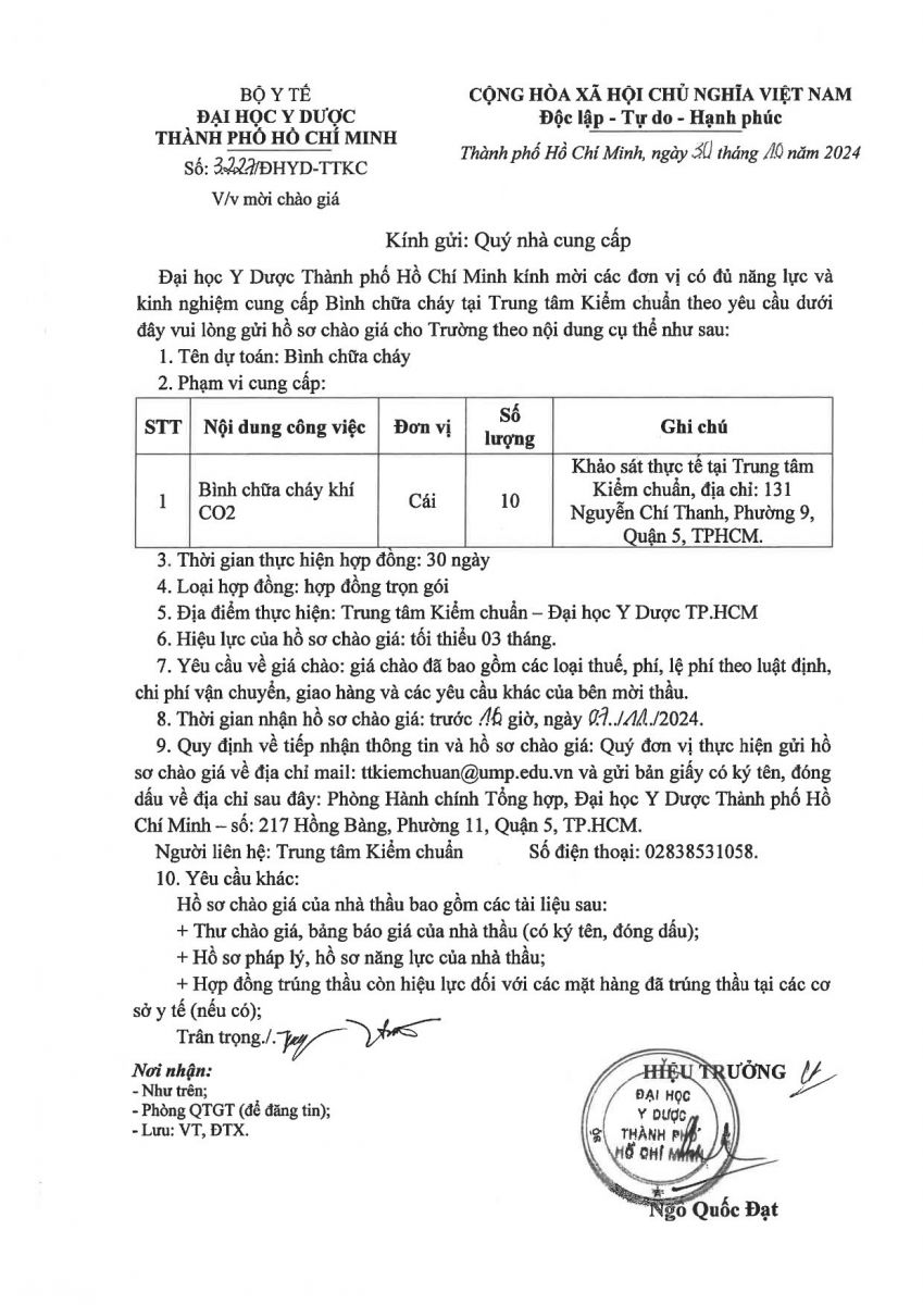 Thời gian nhận hồ sơ chào giá: từ ngày ra thông báo đến trước 16 giờ 00 ngày 07/11/2024