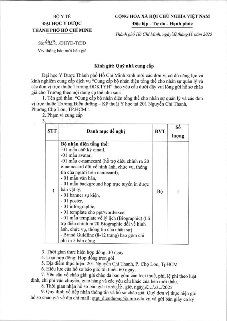 Thời gian nhận hồ sơ chào giá: từ ngày ra thông báo đến trước 16 giờ, ngày 10/11/2025