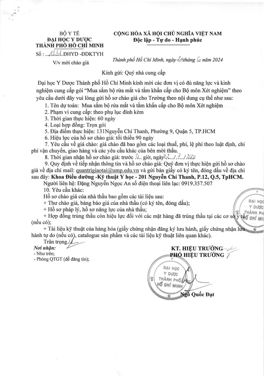 Thời gian nhận hồ sơ chào giá: từ ngày ra thông báo đến trước 09 giờ 00 ngày 02/7/2024