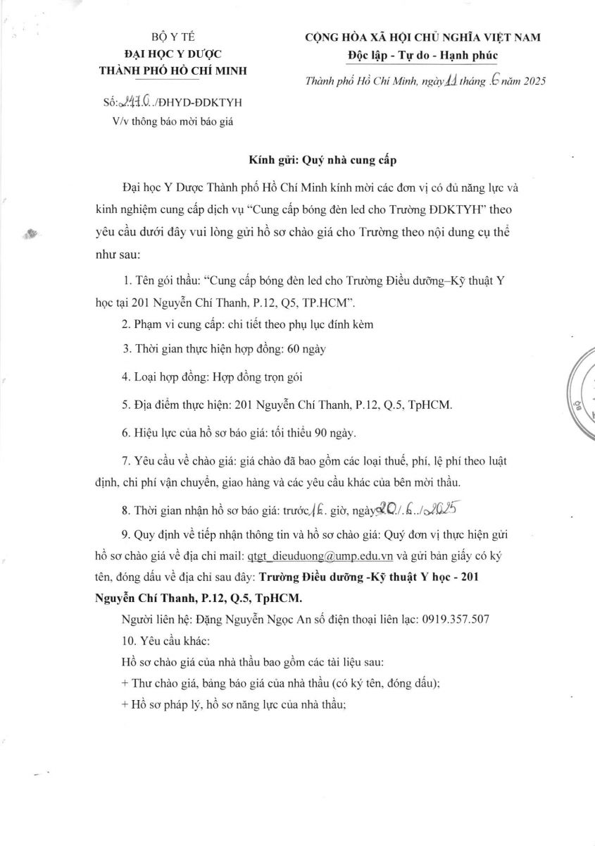 Thời gian nhận hồ sơ chào giá: từ ngày ra thông báo đến trước 16 giờ, ngày 20/6/2025