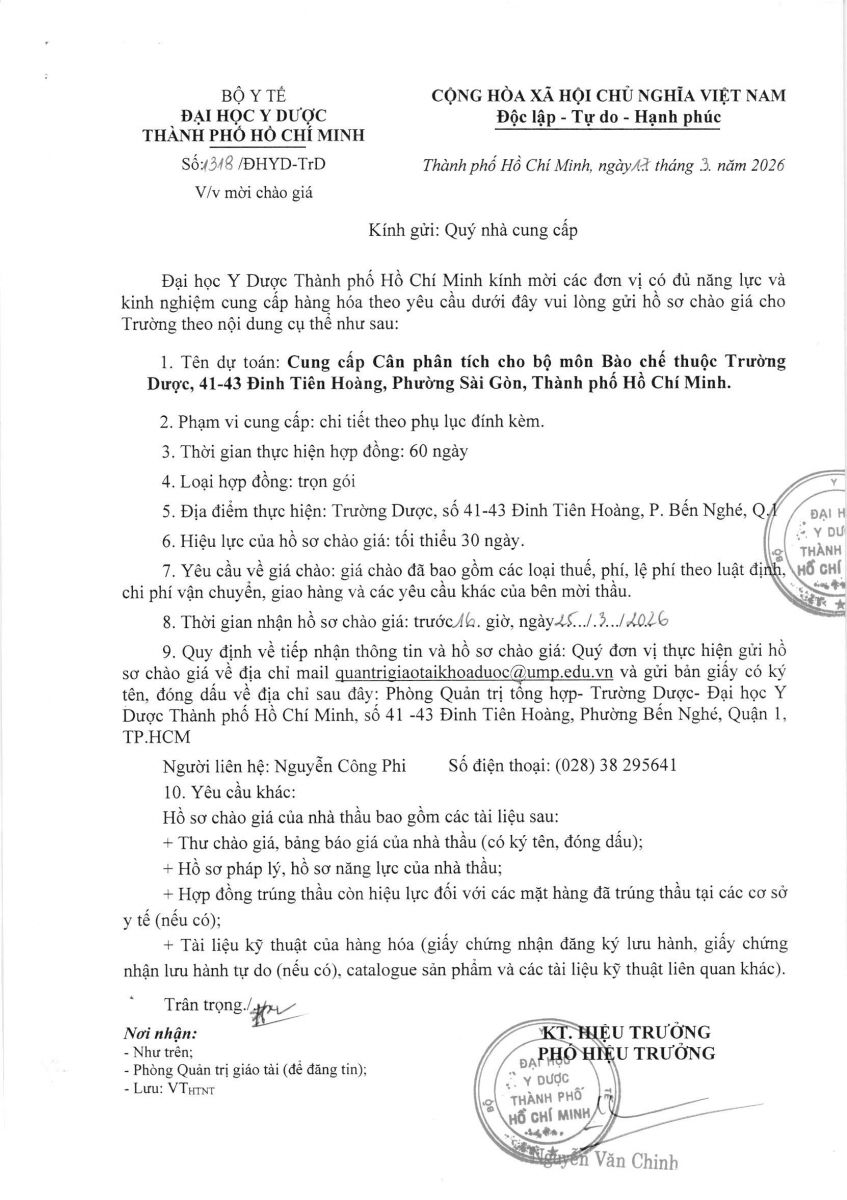 Thời gian nhận hồ sơ chào giá: từ ngày ra thông báo đến trước 16 giờ 00, ngày 25/3/2026