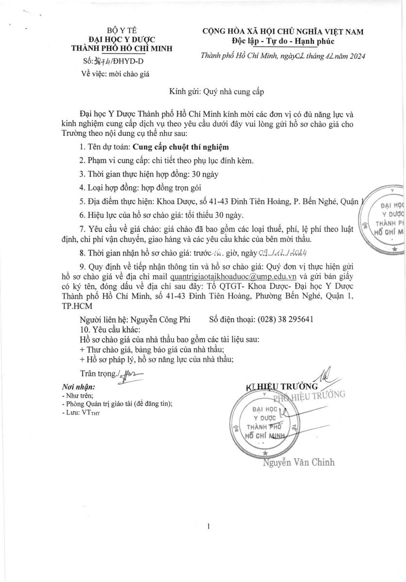 Thời gian nhận hồ sơ chào giá: từ ngày ra thông báo đến trước 16 giờ 00 ngày 09/12/2024