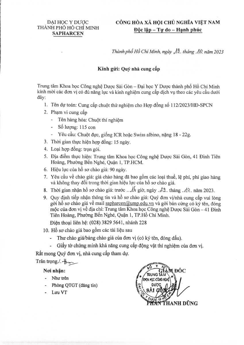 Thời gian nhận hồ sơ chào giá: từ ngày ra thông báo đến trước 16g00 ngày 29/10/2023