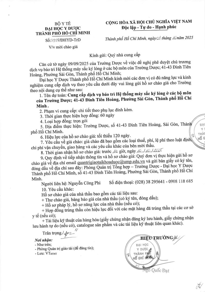 Thời gian nhận hồ sơ chào giá: từ ngày ra thông báo đến trước 16 giờ, ngày 10/10/2025