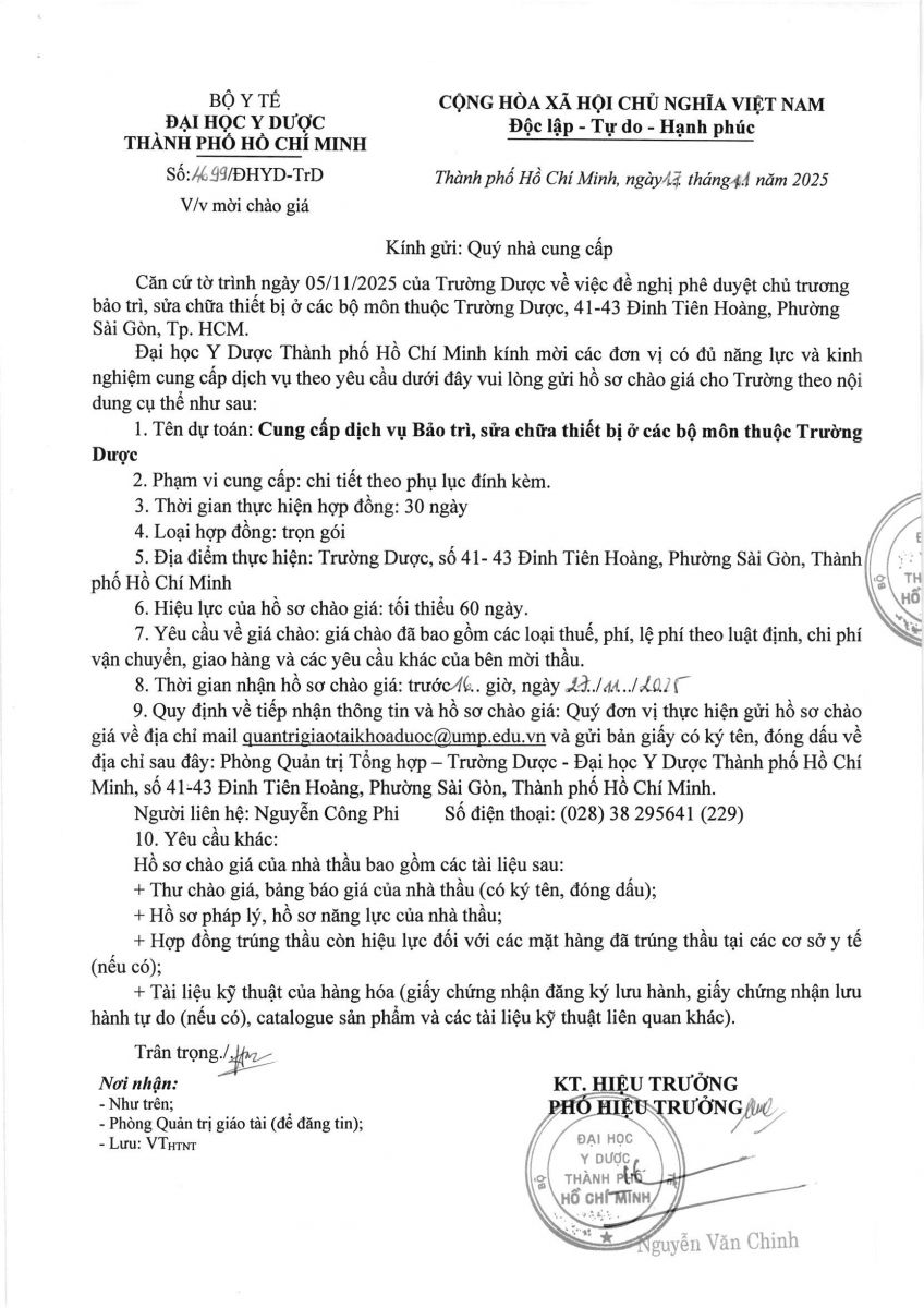Thời gian nhận hồ sơ chào giá: từ ngày ra thông báo đến trước 16:00 ngày 27/11/2025