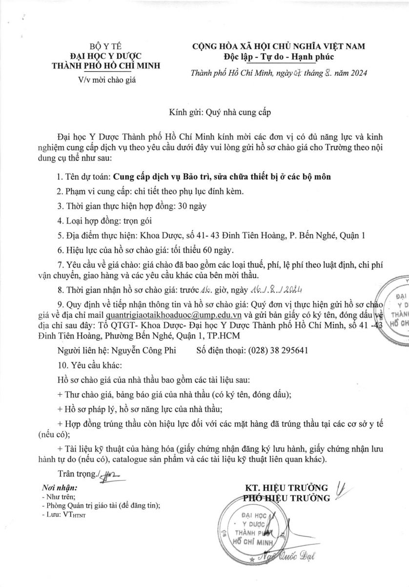 Thời gian nhận hồ sơ chào giá: từ ngày ra thông báo đến trước 16 giờ 00 ngày 16/8/2024
