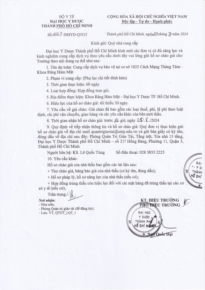 Thời gian nhận hồ sơ chào giá: từ ngày ra thông báo đến trước 16 giờ 00 ngày 05/8/2024
