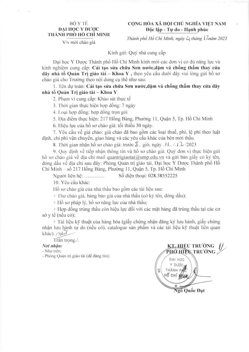 vx88 code mời chào giá: " Cung cấp dịch vụ cải tạo sửa chữa sơn nước, dặm vá chống thấm thay cửa dãy nhà Tổ QTGT-Khoa Y (khảo sát thực tế) - Đại Học vx88b Thành Phố vx88m