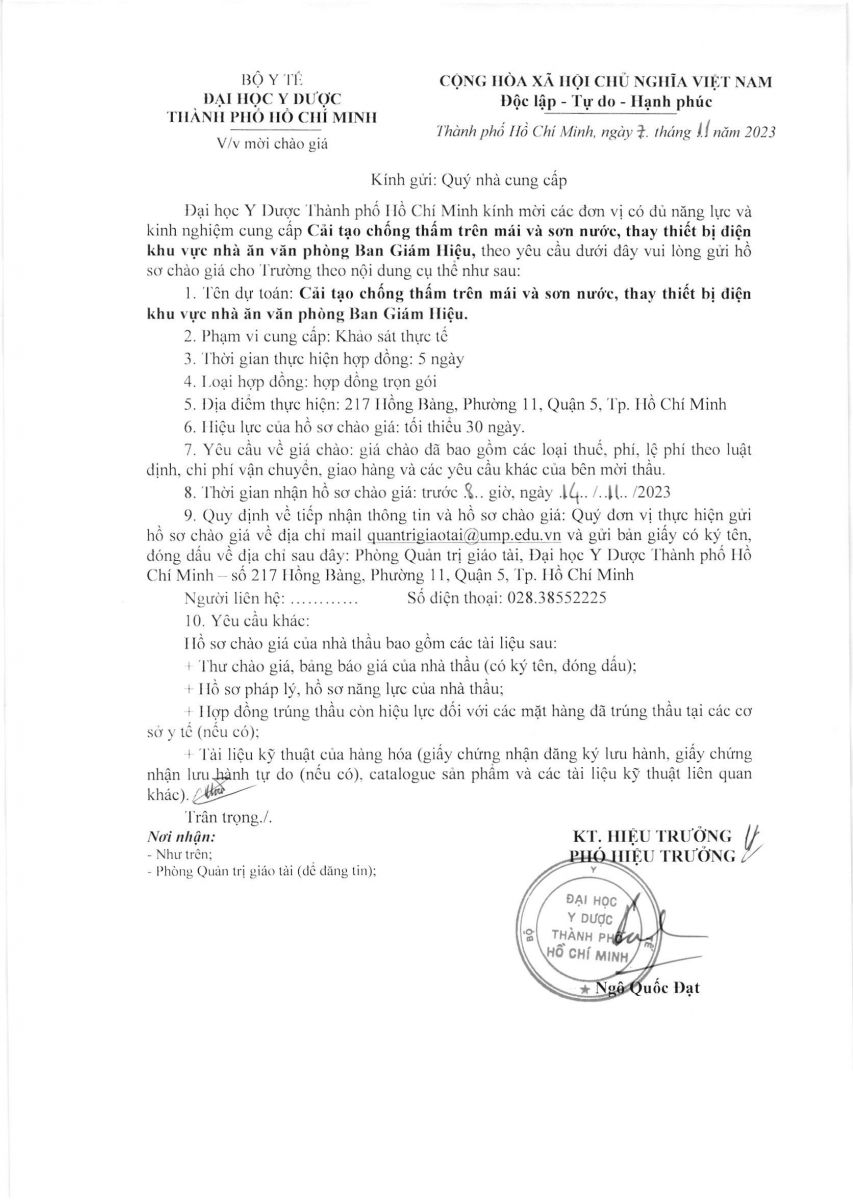 Thời gian nhận hồ sơ chào giá: từ ngày ra thông báo đến trước 8g00 ngày 14/11/2023