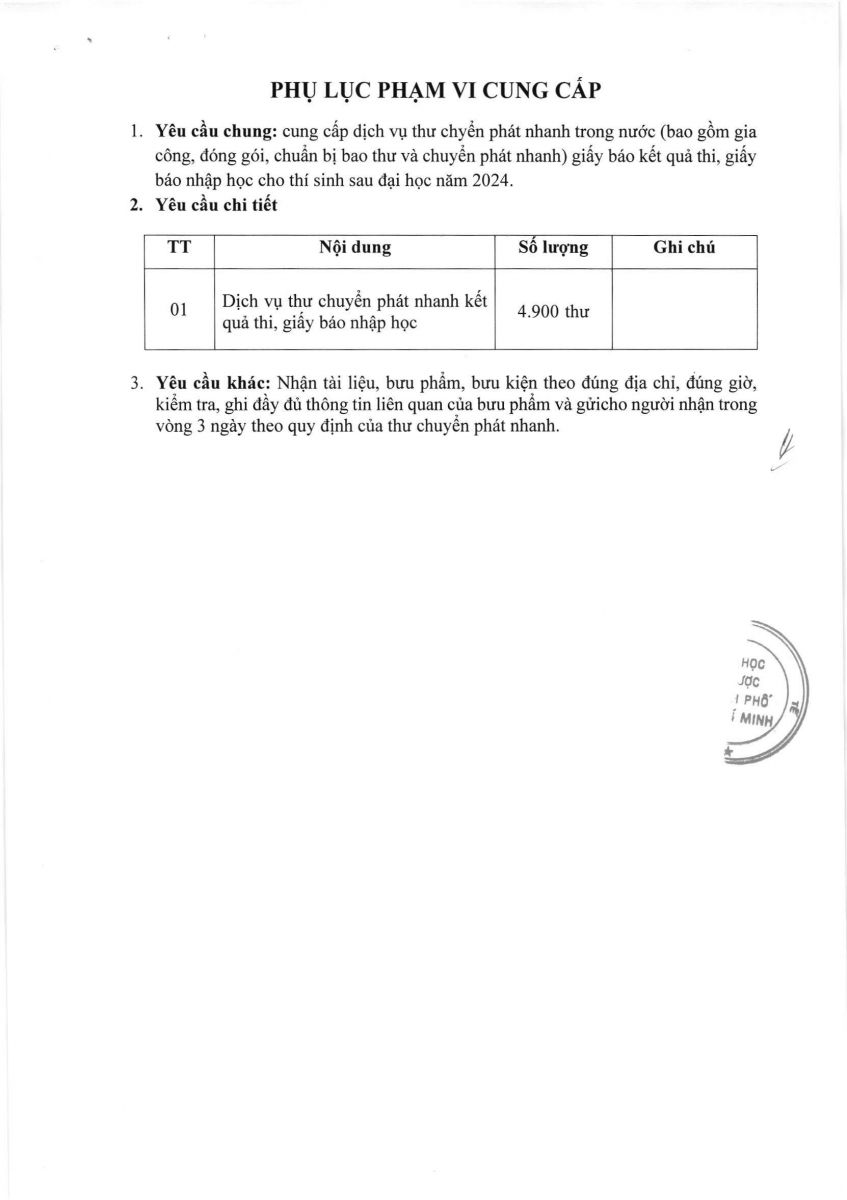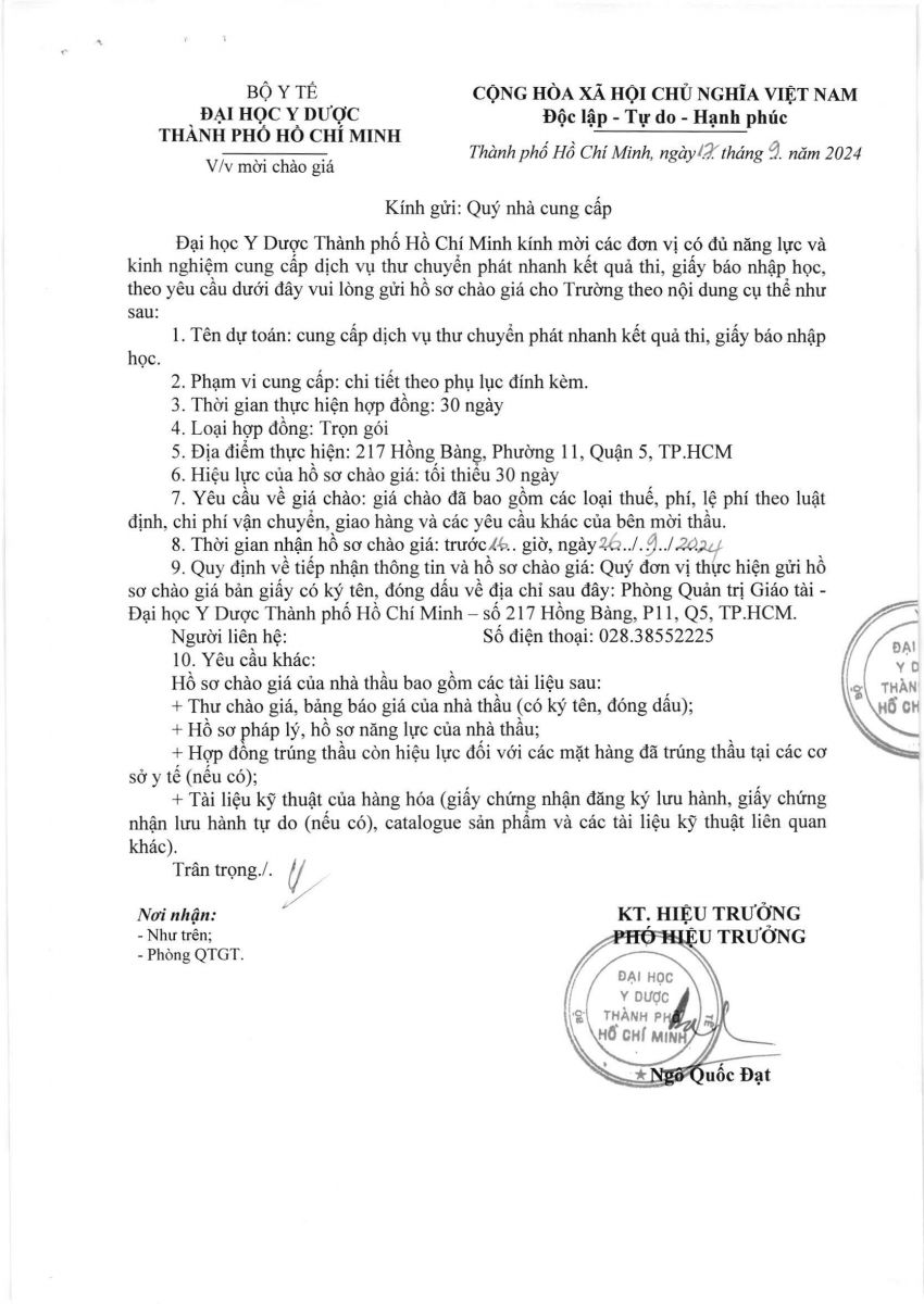 Thời gian nhận hồ sơ chào giá: từ ngày ra thông báo đến trước 16 giờ 00 ngày 26/9/2024